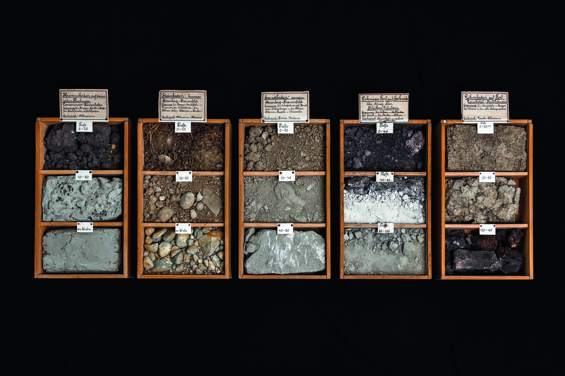 Diese rund 100 Jahre alten Kästchen von Bodenarten gehörten dem ersten amtierenden Kulturingenieur des Kantons Thurgau. …
